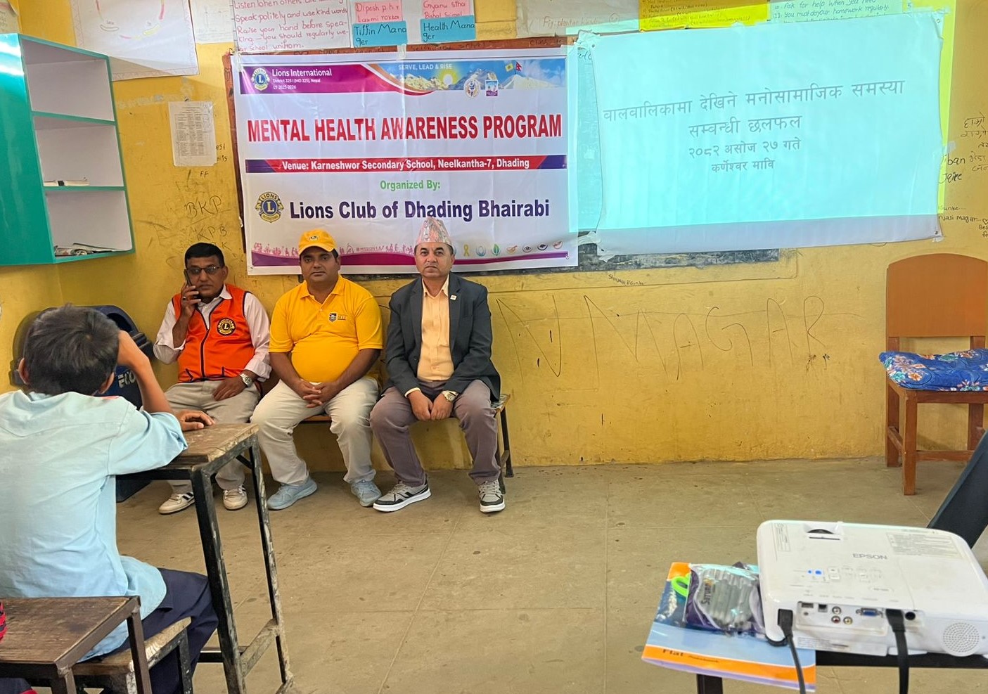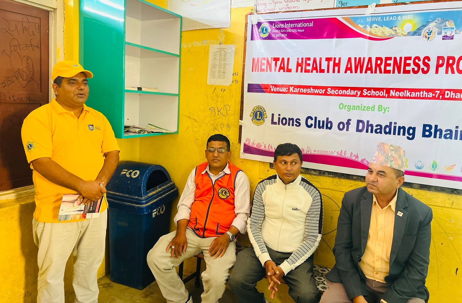 लायन्स क्लव अफ धादिङ भैरवीद्धारा कर्णेश्वमा माविमा मानसिक स्वास्थ्य सम्बन्धी सचेतना