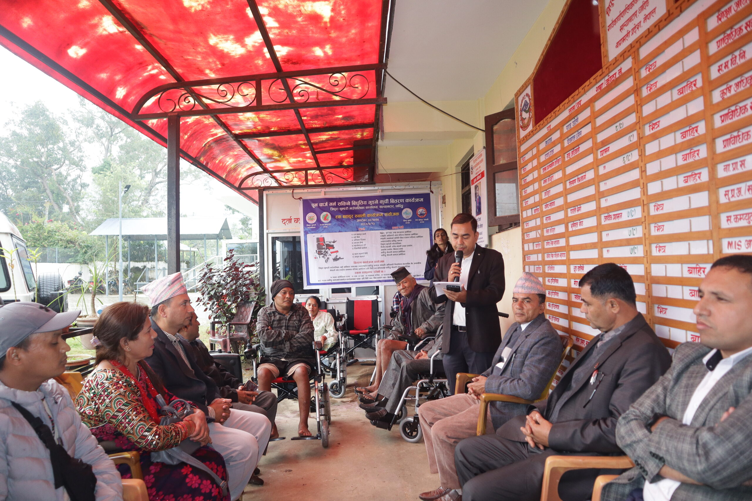 व्यक्तिगत स्तरबाट आठ वटा आधुनिक विद्युतीय ह्विलचियर वितरण धादिङमा पहिलोपटक गरिएको हो। समाजसेवी तथा धादिङ नेपाली समाज अमेरिकाका अध्यक्ष रुवालीले पठाउनु भएको शुभकामना कार्यक्रम संचालक,पत्रकार तथा अन्तराष्ट्रिय धादिङ समाजका कोषाध्यक्ष रामकुमार थापाले वाचन गर्नुभएको थियो ।