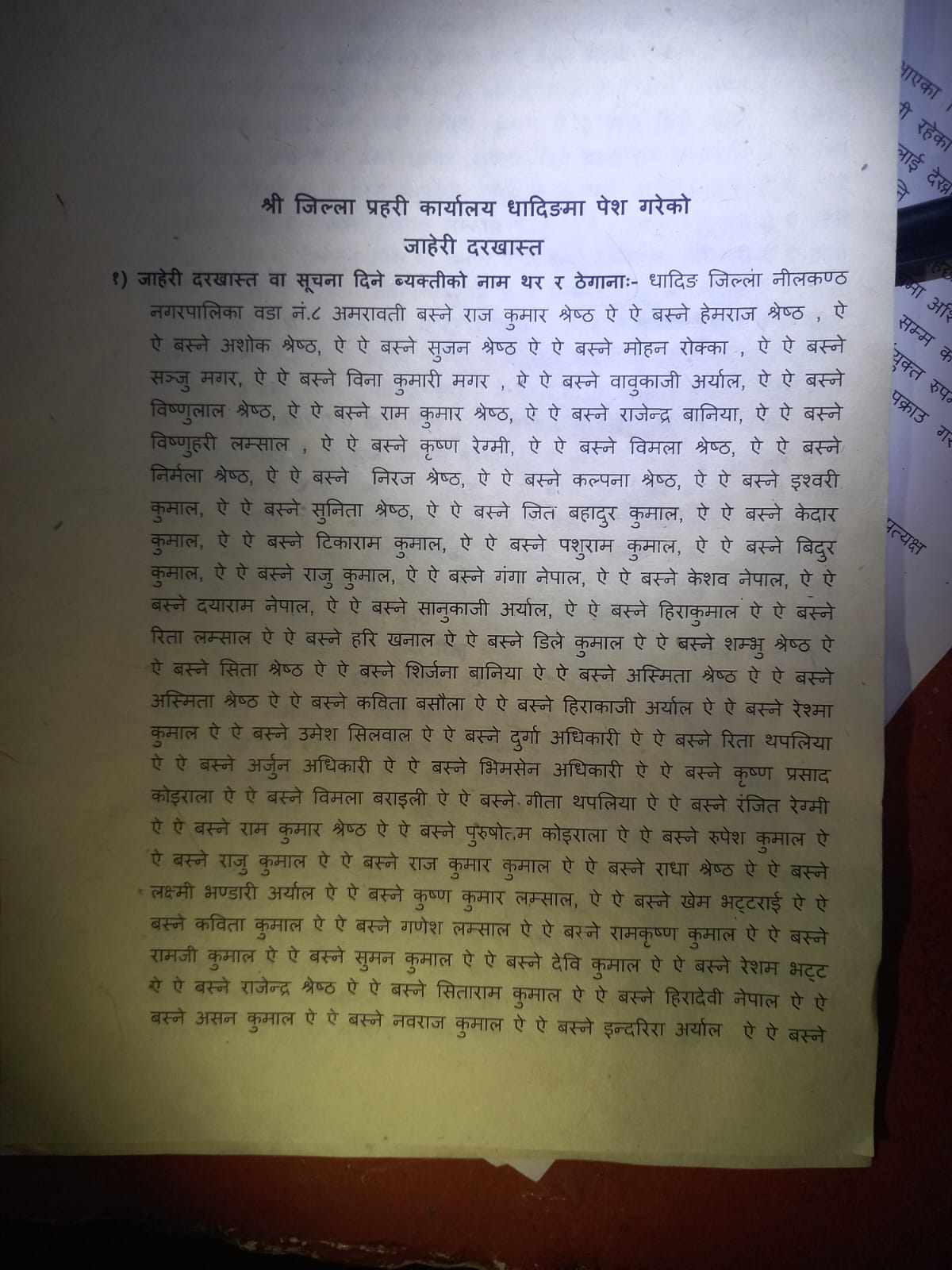त्यही घट्नालाई लिएर जबरजस्ती करणी उद्योगसम्बन्धी आरोप झुठो भएको भन्दै स्थानीयवासीले कानूनको दुरुपयोग गरी कसैलाई फसाउने कार्य तत्काल रोक्नुपर्ने माग गरेका छन्। बुधबार वडा नम्बर ८ का २५० भन्दा बढी गाउँलेले हस्ताक्षर गरेर प्रहरीलाई घटनाको सत्यतथ्य जाँचबुझ गर्न र गलत आरोप लगाई वदनाम गर्नेमाथि कारवाहीको माग गरेका हुन् ।स्थानीयका अनुसार घाँस काट्ने क्रममा विवाद सहित झगडा भएको हो । तर दिउँसो वरपर प्रतक्ष्यदर्शी भएको समयमा बलात्कार जस्तो प्रयासको आरोप गलत छ स्थानीयले बताएका छन् । दुवै जनालाई प्रहरीले नियन्त्रणमा लिएपछि घटनाको वास्तविकता फरक रहेको भन्दै स्थानीयहरू बुधवार जिल्ला प्रहरी कार्यालय धादिङ पुगेर प्रहरीलाई लिखित निवेदन पेश गरि जाहेरी खारेजीको माग गरेका हुन् ।घटनामा पिडक भनिएका व्यक्तिमाथि कानूनको दुरुपयोग गरी फसाउन खोजिएको आरोप गाउँलेहरूको छ। निराधार आरोपका आधारमा व्यक्तिको प्रतिष्ठा नष्ट हुने खालका गतिविधि गर्न नहुने स्थानीय सरिता श्रेष्ठले बताउनुभयो।